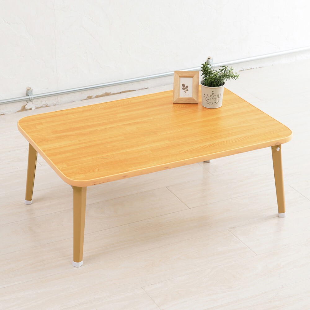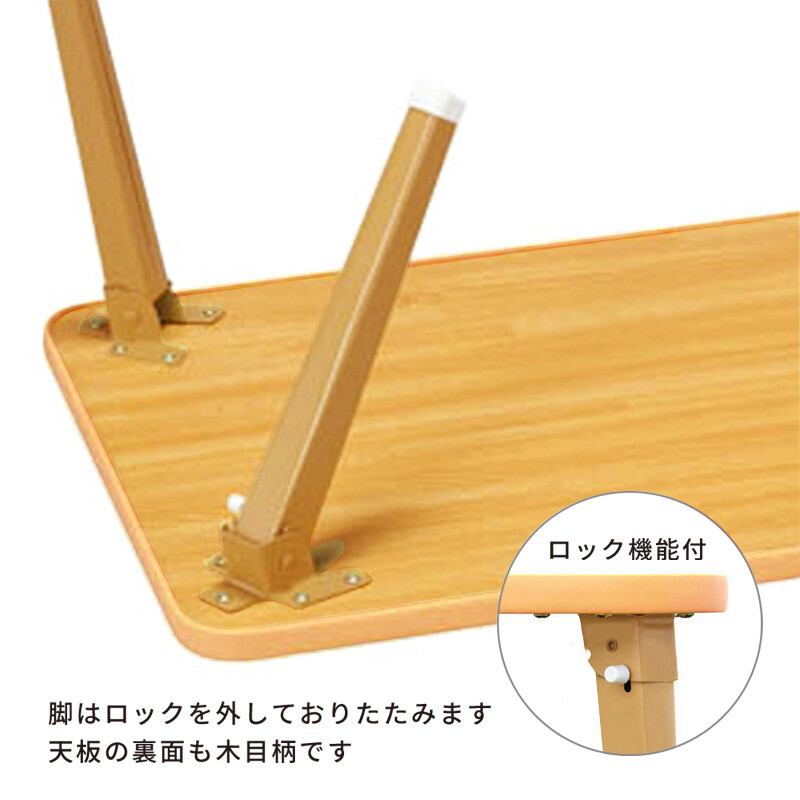 ナチュラルな木目調の折りたたみテーブル。
